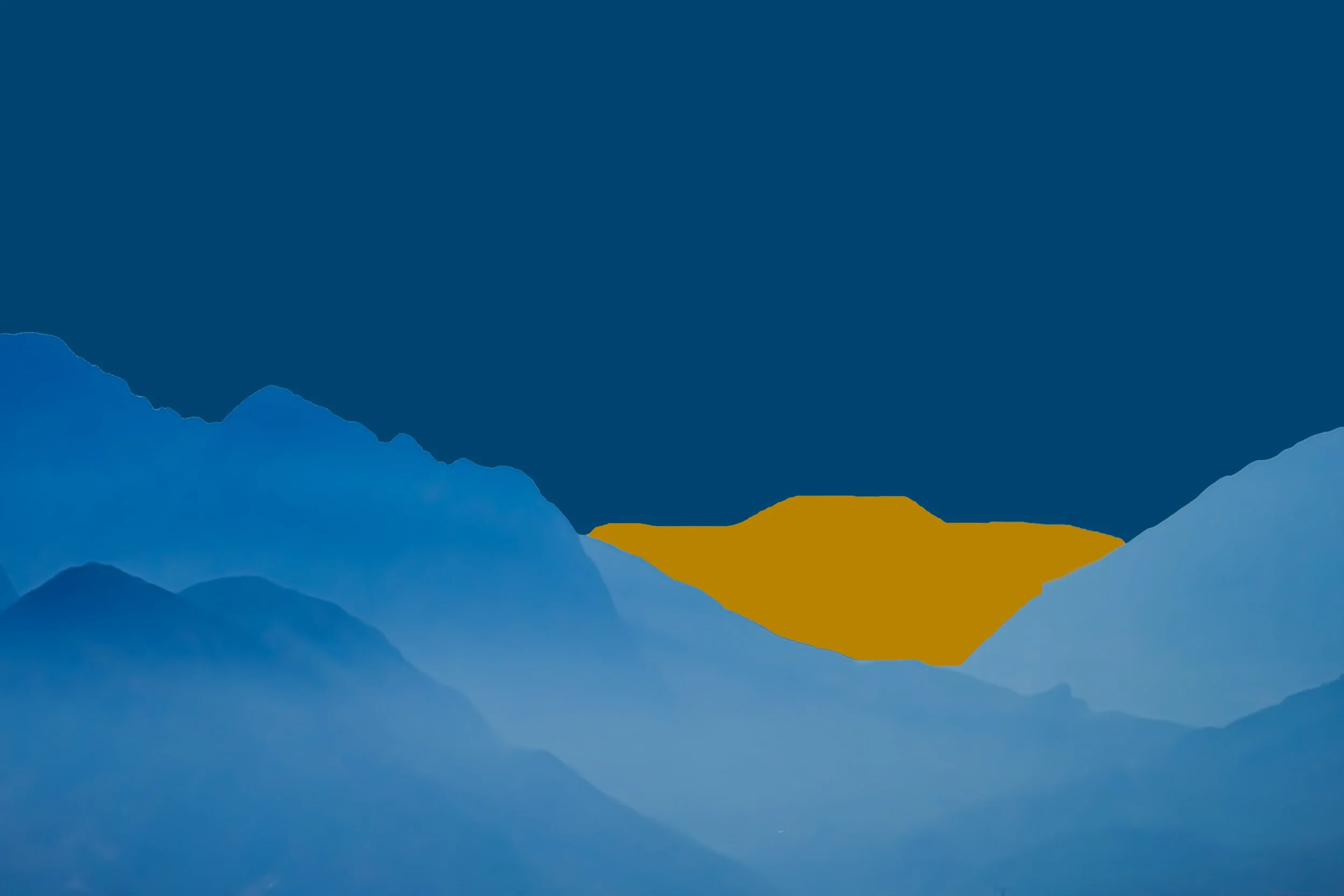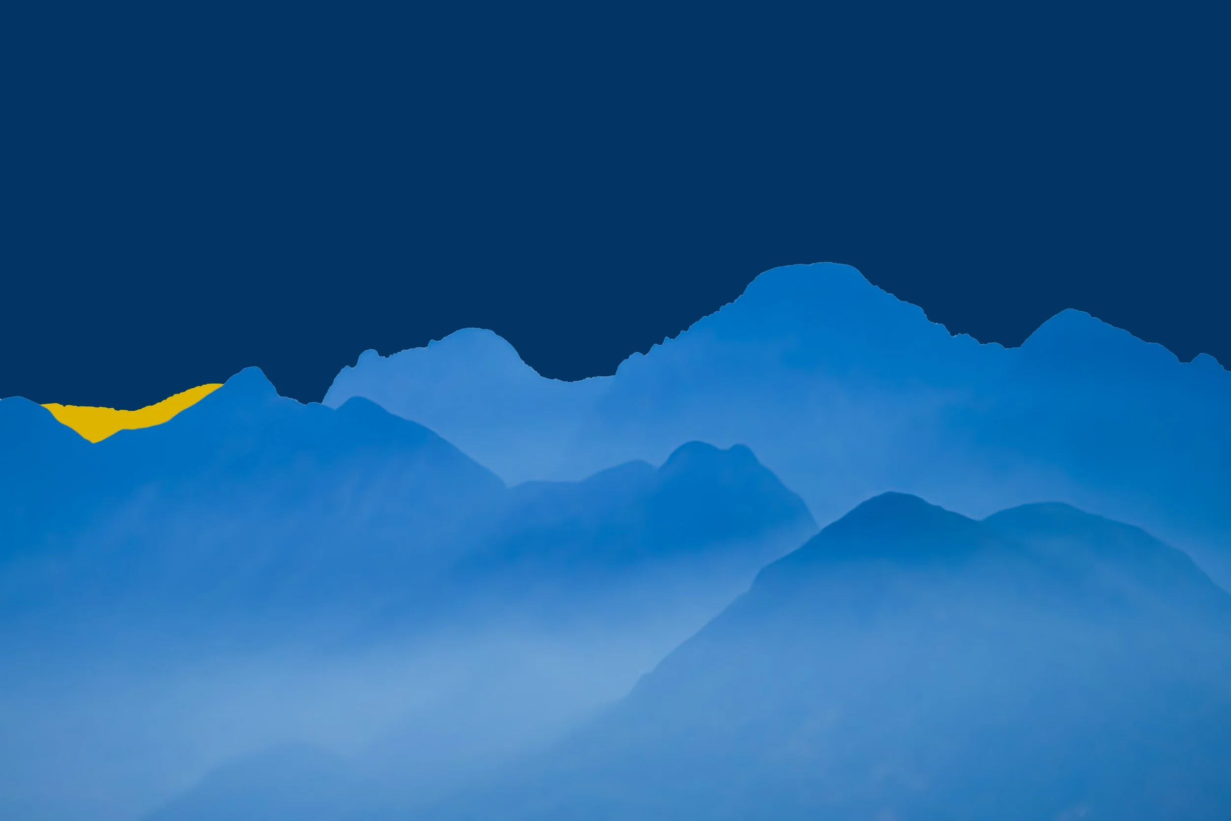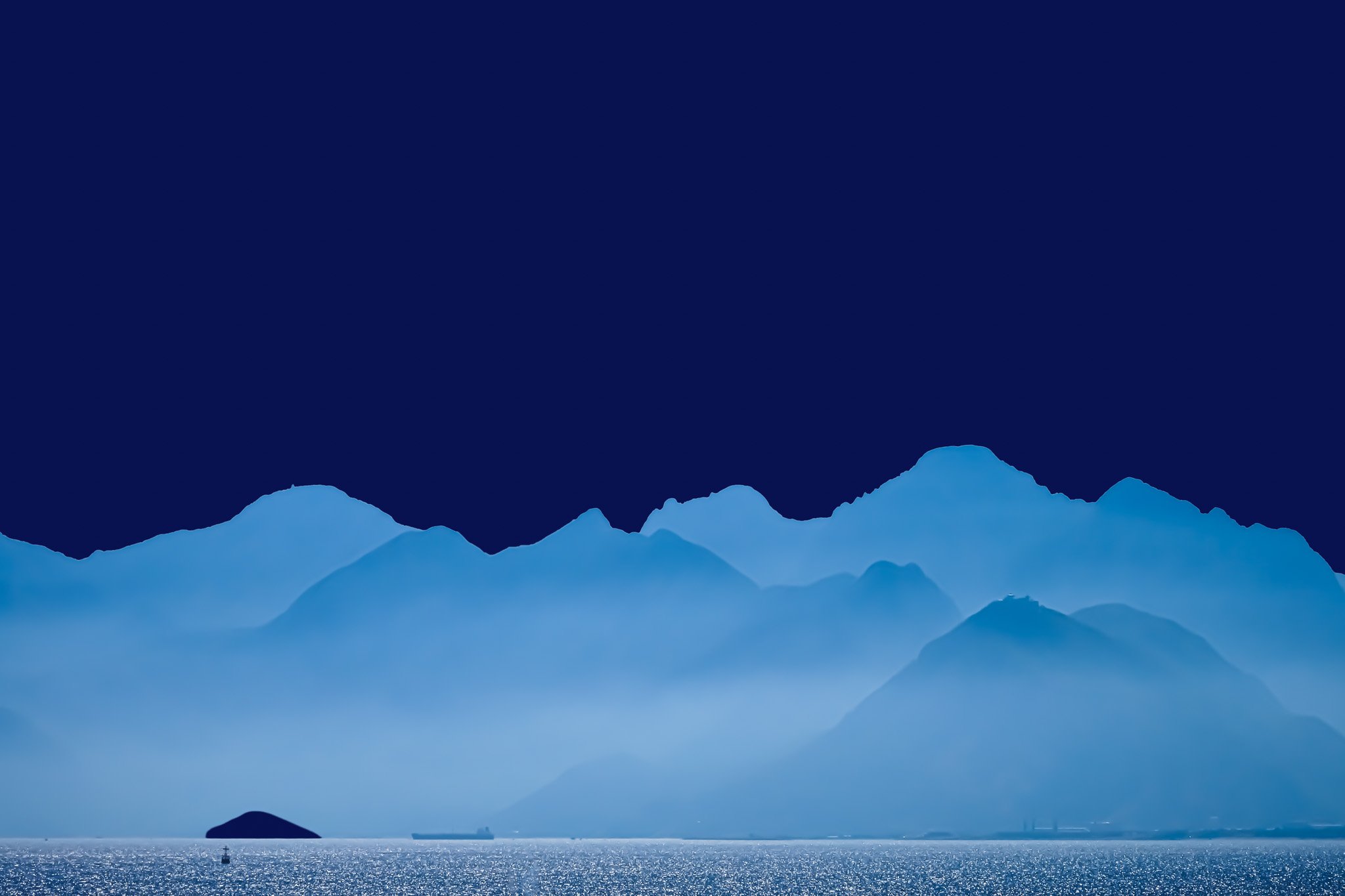 The work is less a depiction of place than a meditation on permanence and change. Through simplified planes of midnight blue, misty ultramarine, olive green, and soft slate, the mountains become a living geometry — the rhythm of earth folding into sky. The atmosphere, dense with stillness, speaks of time measured not in minutes but in millennia.